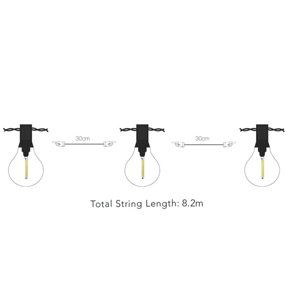 This warm white set of 25 bulbs are spaced 30cm apart along an 8m string