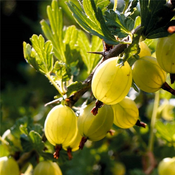 A very heavy cropper, producing greenish-yellow berries. A unique flavour, delicious and aromatic with a slight hint of apricots. With its red and green sisters, this variety is excellent for organic growing with high mildew resistance. A very hardy variety. Full sun and well-drained soil. Picking month July. Self-fertile.